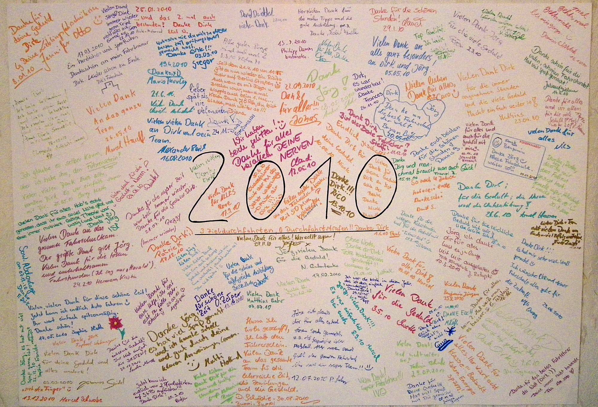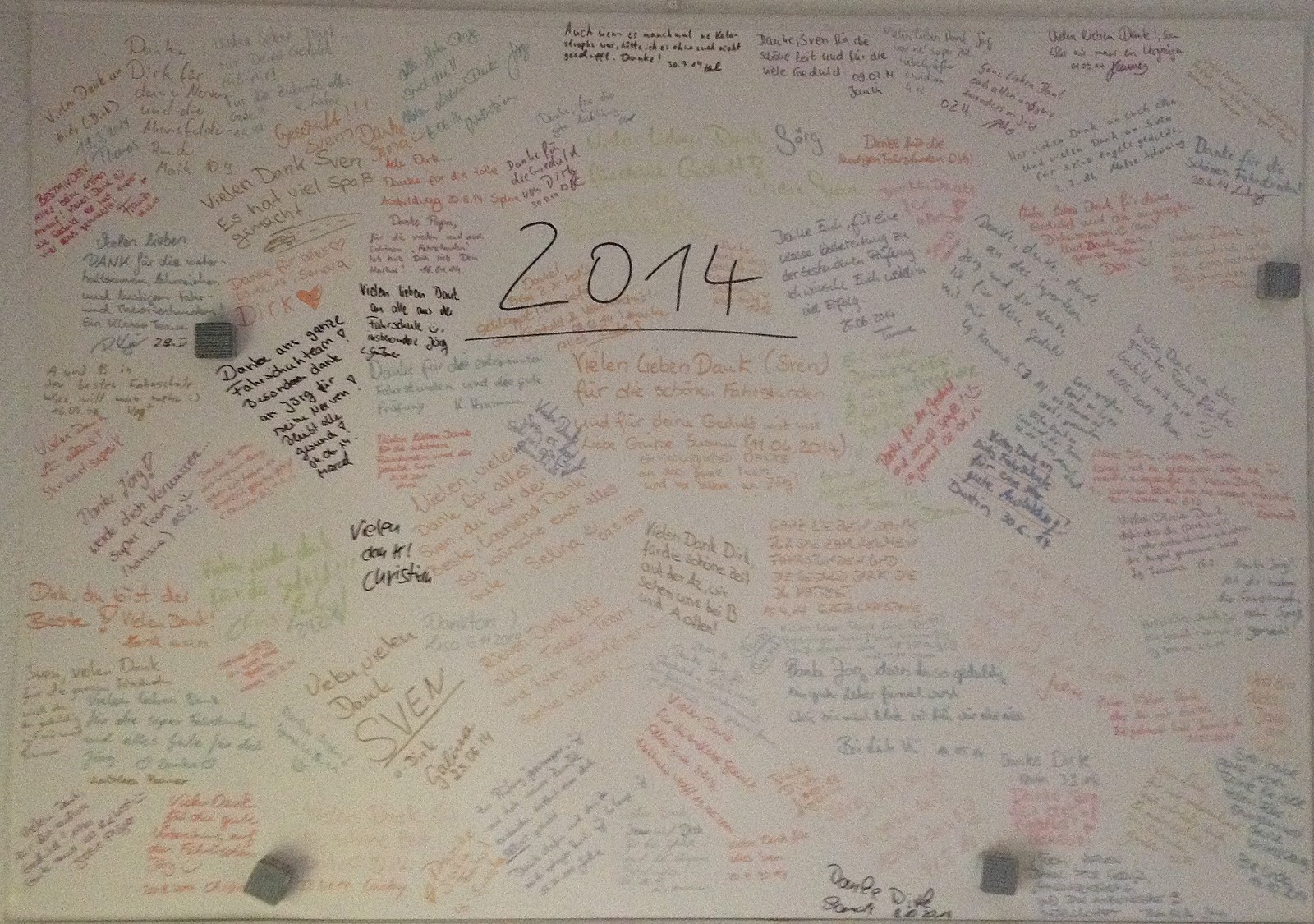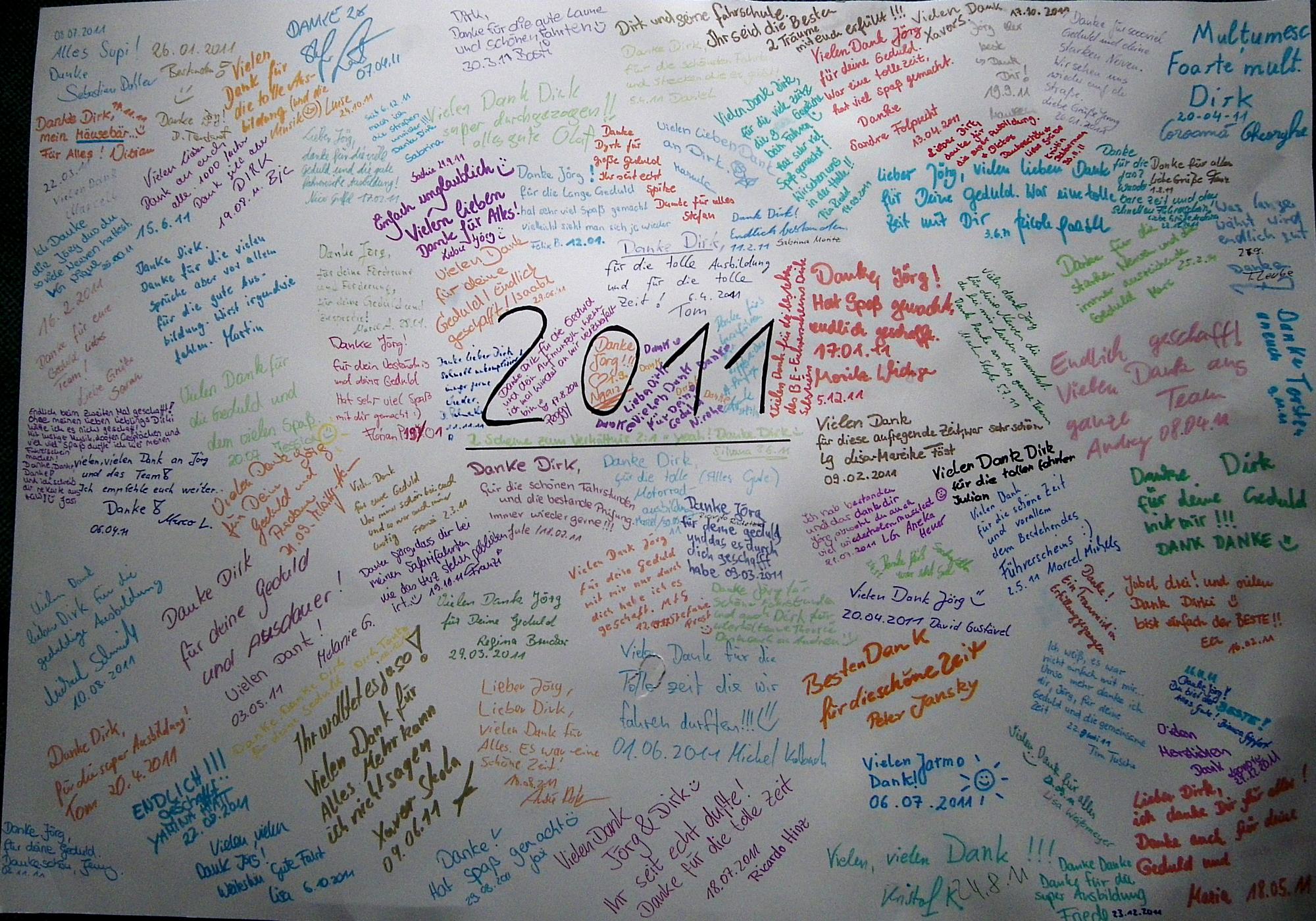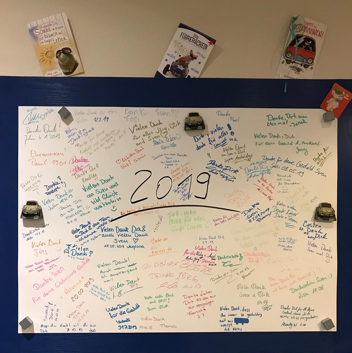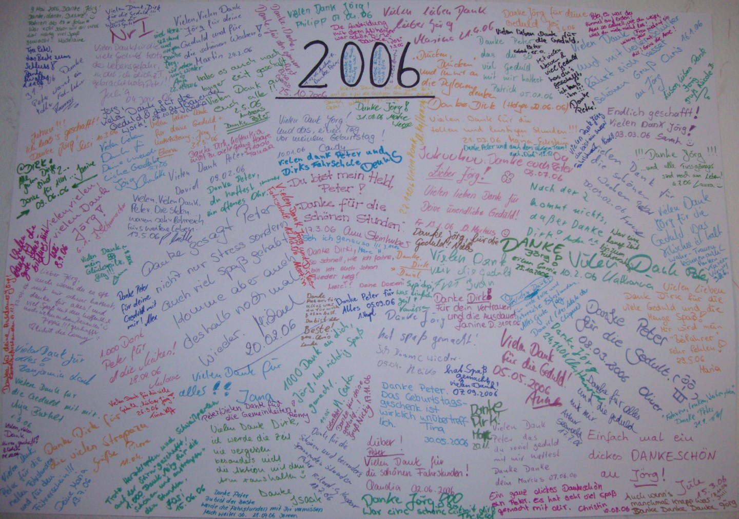 Hier siehst Du unsere Jahresplakate mit vielen Unterschriften, lieben Worten und Erinnerungen an gemeinsam bestandene Prüfungen.