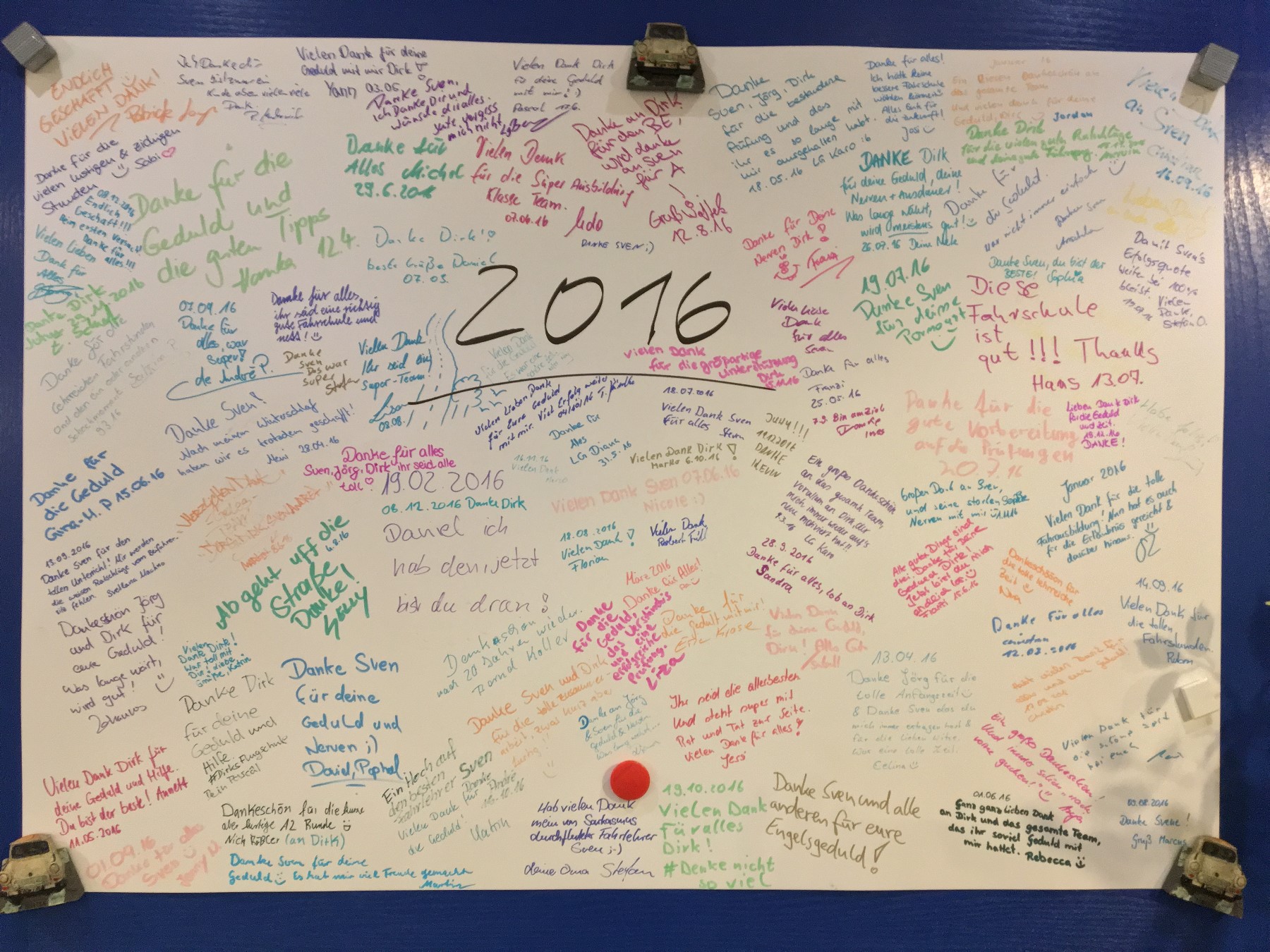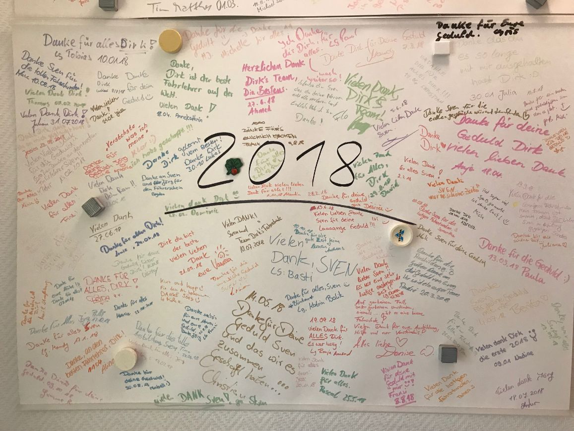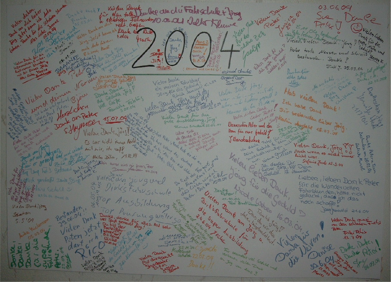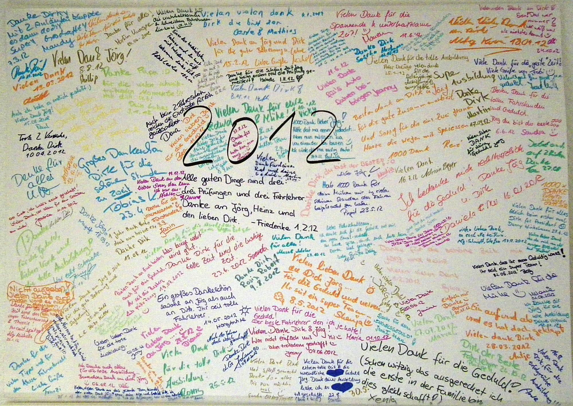 Hier siehst Du unsere Jahresplakate mit vielen Unterschriften, lieben Worten und Erinnerungen an gemeinsam bestandene Prüfungen.