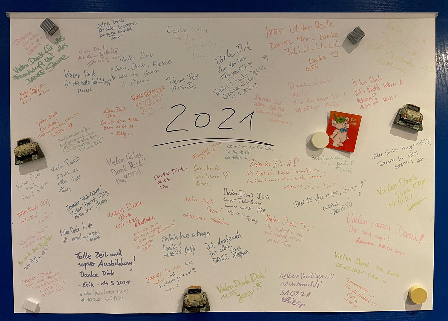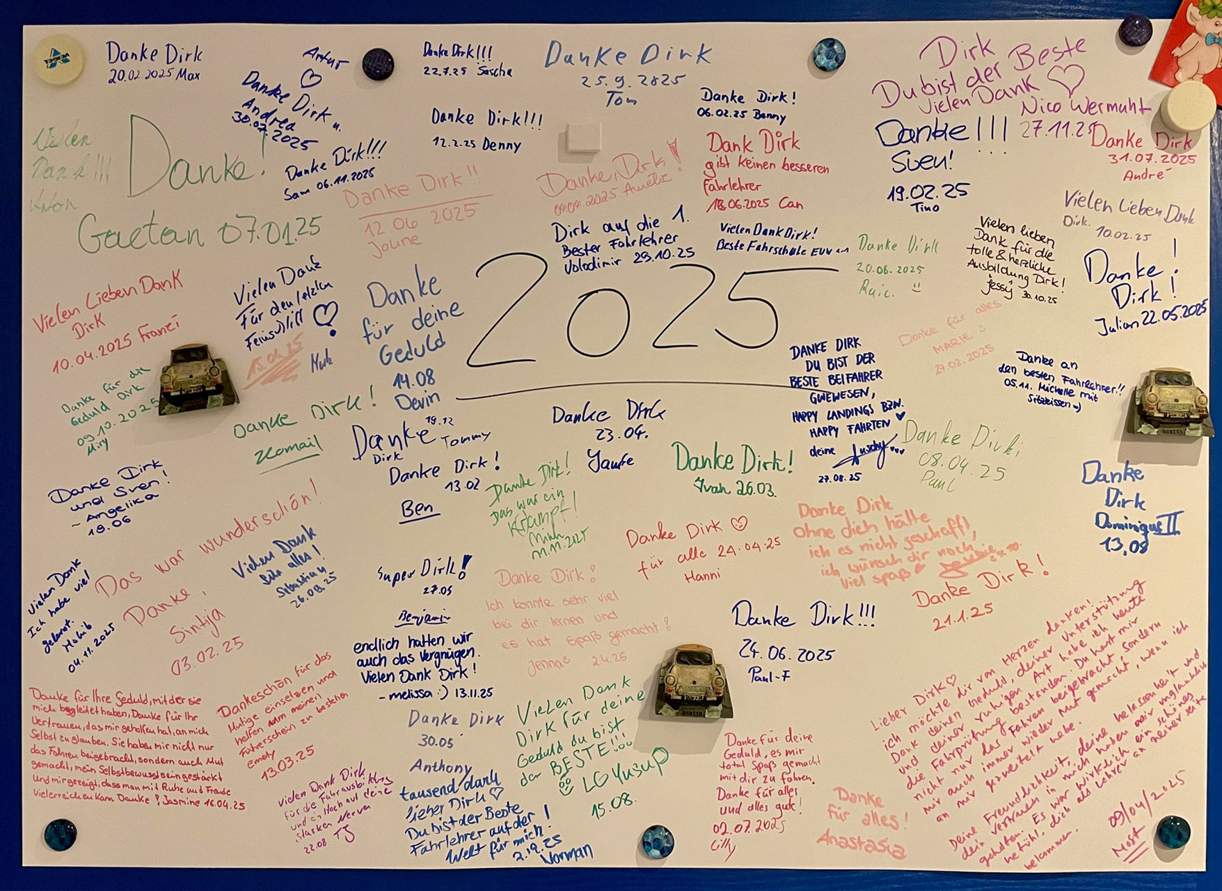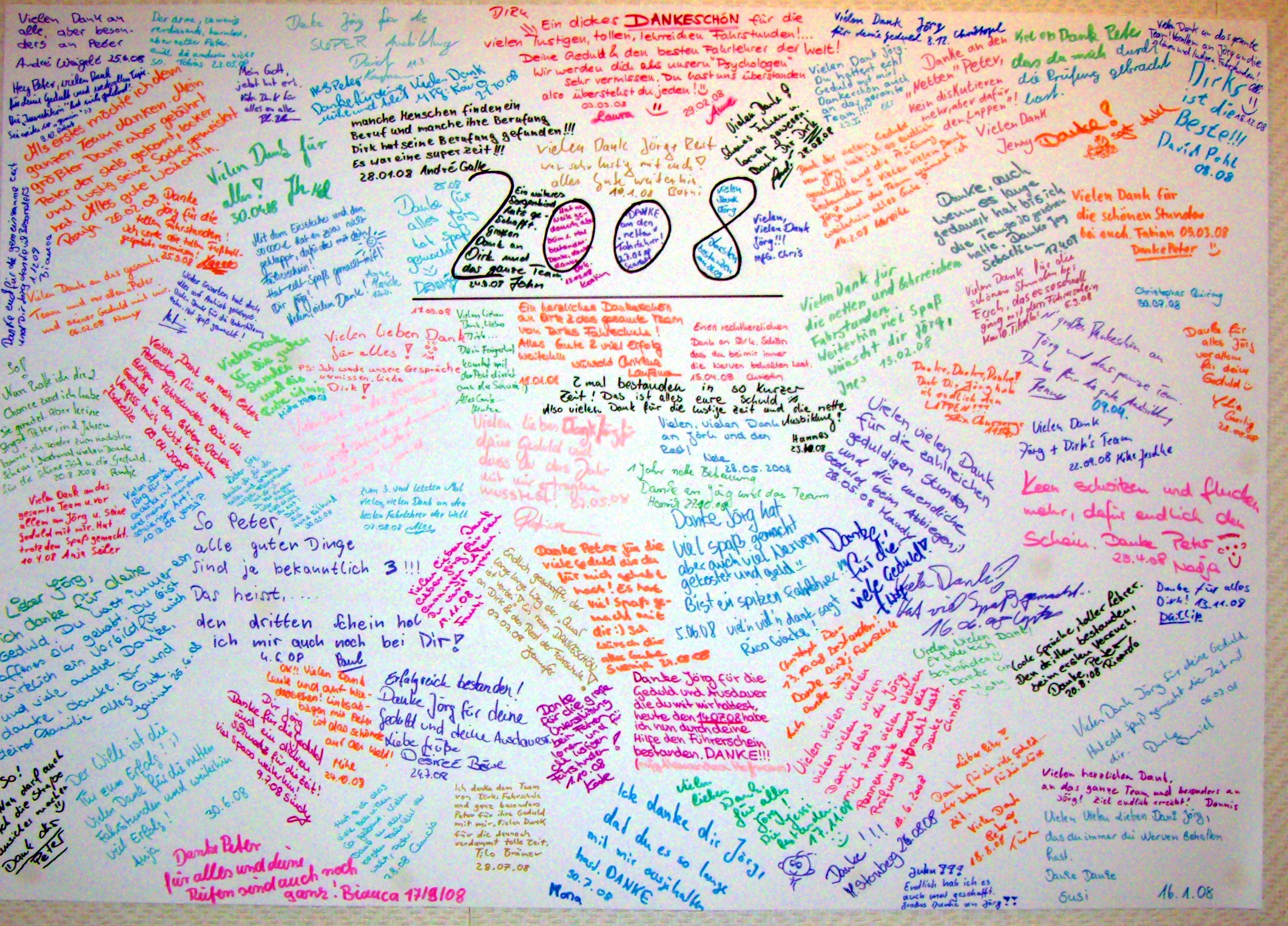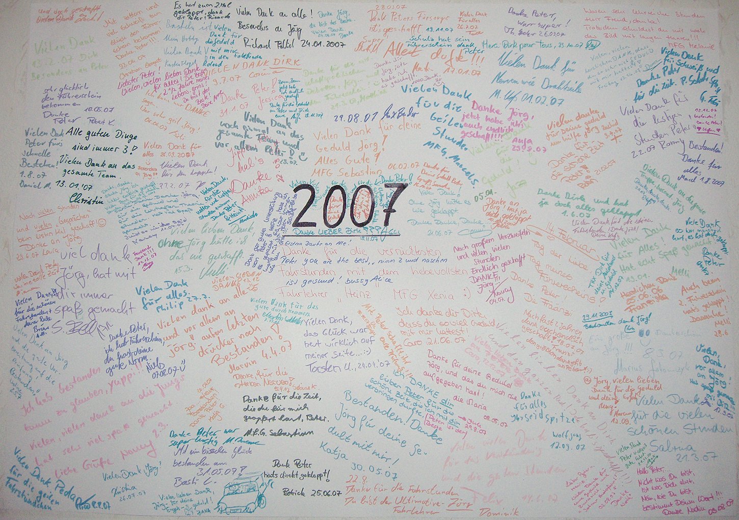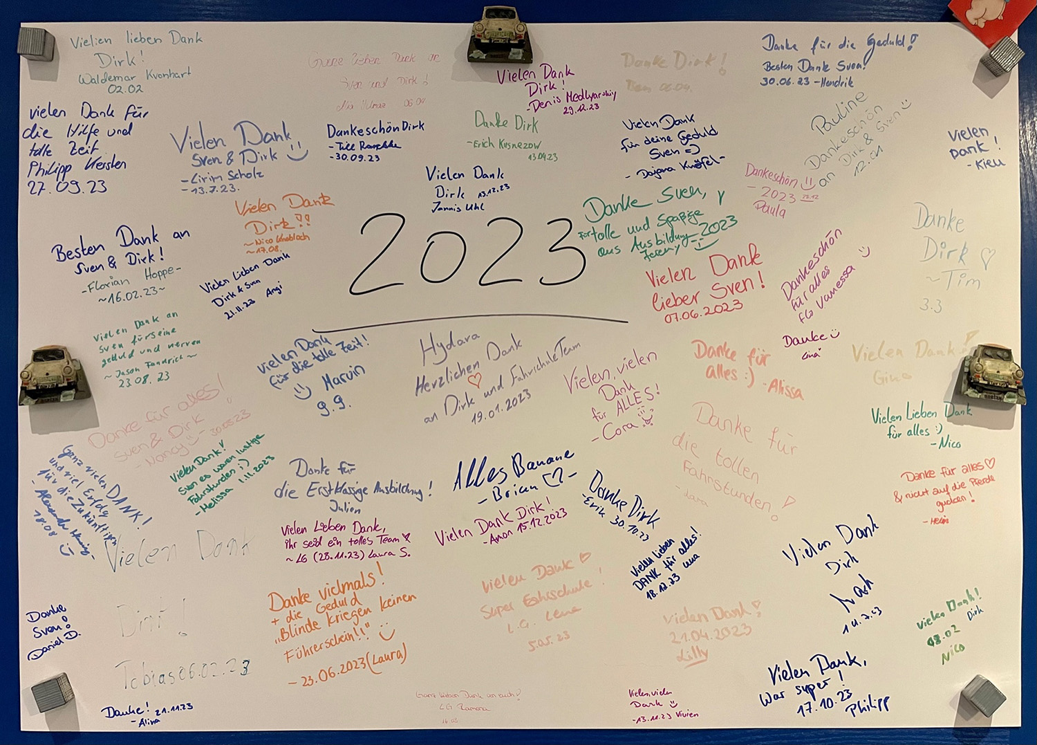 Hier siehst Du unsere Jahresplakate mit vielen Unterschriften, lieben Worten und Erinnerungen an gemeinsam bestandene Prüfungen.