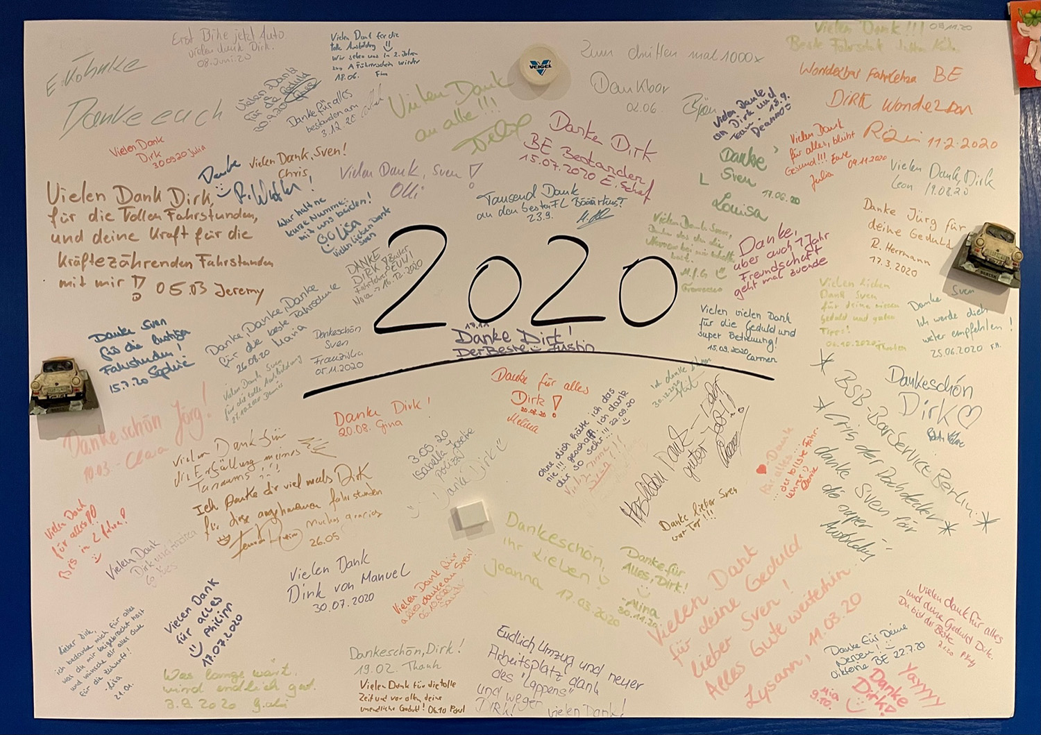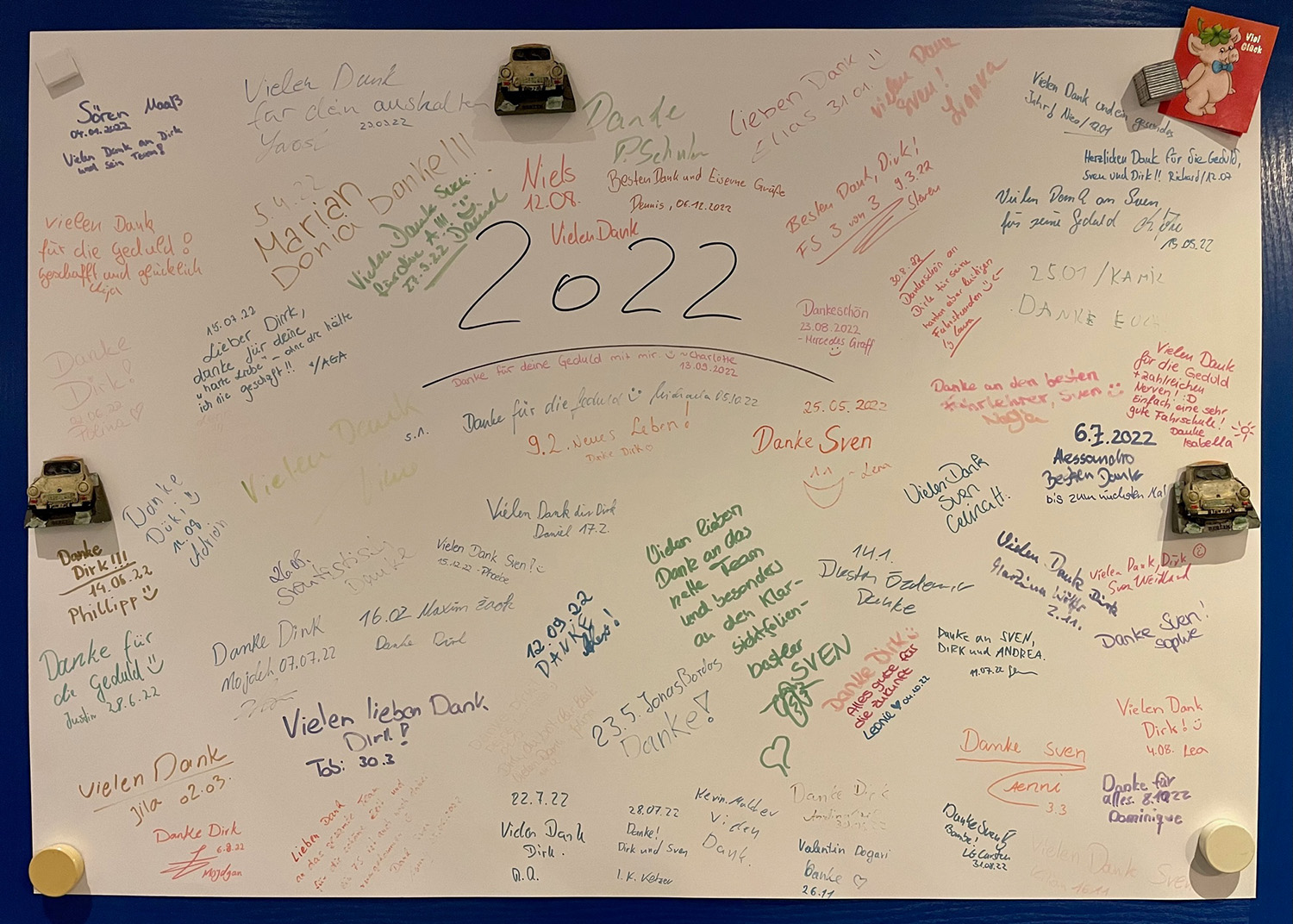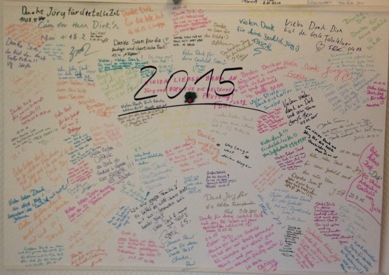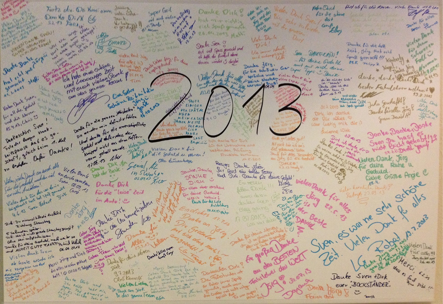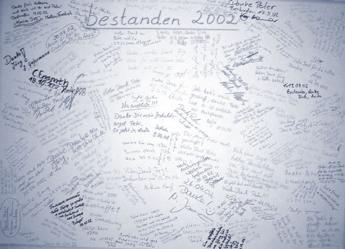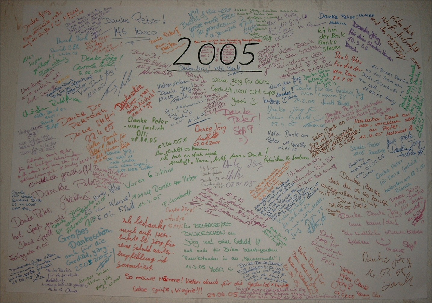 Hier siehst Du unsere Jahresplakate mit vielen Unterschriften, lieben Worten und Erinnerungen an gemeinsam bestandene Prüfungen.